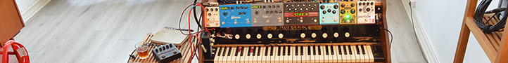 All songs, strange and abstract sounds come from the very same harmonium and its pedals.