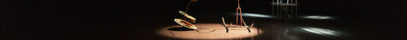 GUTER DINGE is a choreographic dialogue between three machine-things and one performer, combining elements from theater play, installation and dance. With crude, unpredictable patterns of movement, Dirigentenkreisel [conductor's spintop], Staksende Wippe [staking rocker] and Wabbelndes Seegras [wobbling seaweed] wander, wriggle and swing through the room: they are disturbers and disturbed - characters on a stage.